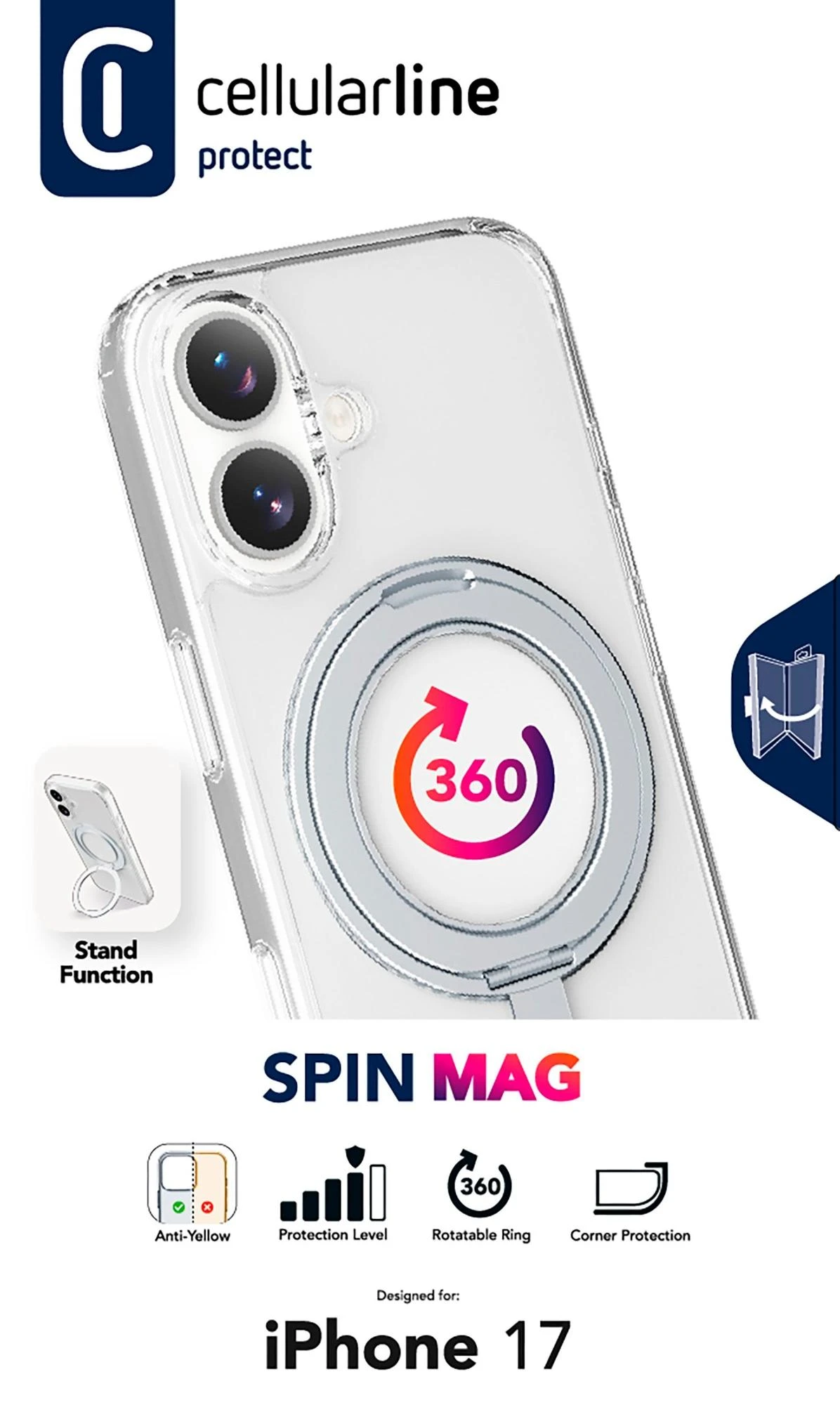 Cellularline SPIN MAG MagSafe Case iPhone 17 Clear