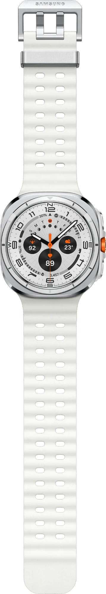 Mit der Galaxy Watch Ultra ist Galaxy AI jetzt auch auf den Galaxy Smartwatches angekommen.1 Die AIgestützten Funktionen in Verbindung mit dem präziseren Samsung BioActive Sensor und der starken Chipleistung machen deine Galaxy Watch Ultra jetzt noch intelligenter. Entdecke ein verbessertes